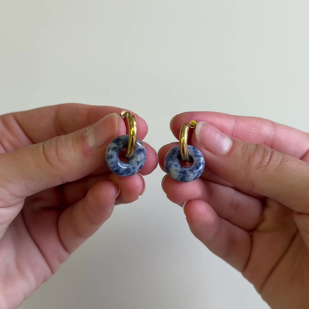 The Trends - Blue - Gold These are versatile and stylish earrings. Wear them as a complete set with their blue accent piece. Or remove it to reveal a classic ring. A 2-in-1 piece of jewelry, practical and elegant.
