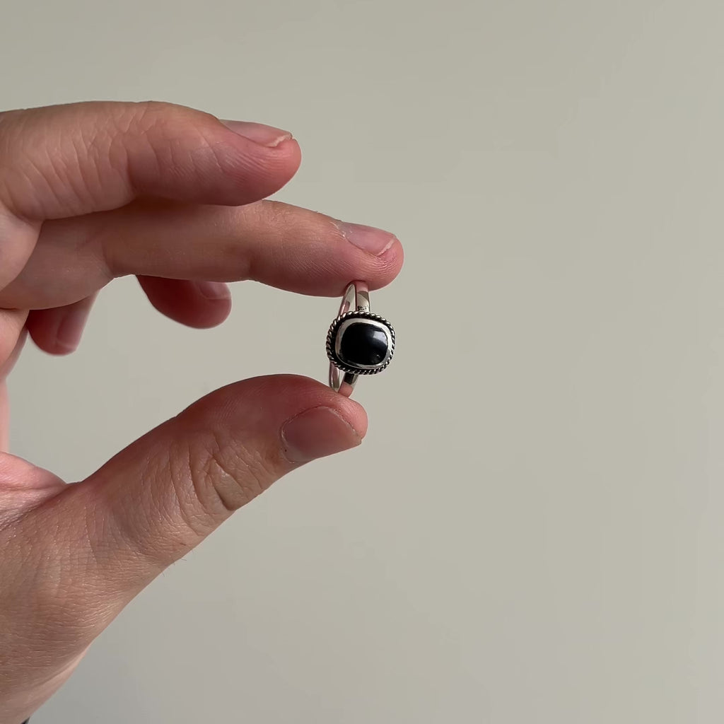 La bague La Brute séduit par son allure singulière et affirmée. Sertie d’une pierre d’onyx noir à l’éclat profond et mystérieux, elle incarne la force et la protection. Son anneau en argent, délicatement torsadé, souligne l’intensité sombre de la pierre et offre un contraste saisissant et élégant.