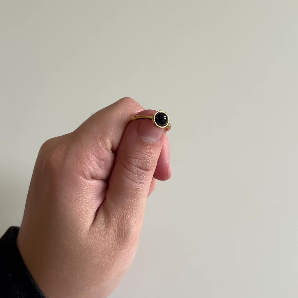 La bague La Nocturne – gold séduit par son charme mystérieux et raffiné. Sertie d’une pierre noire profonde aux reflets énigmatiques, elle incarne l’élégance intemporelle et la force intérieure. Son anneau doré aux lignes délicates sublime la pierre sombre, offrant un contraste saisissant et lumineux.