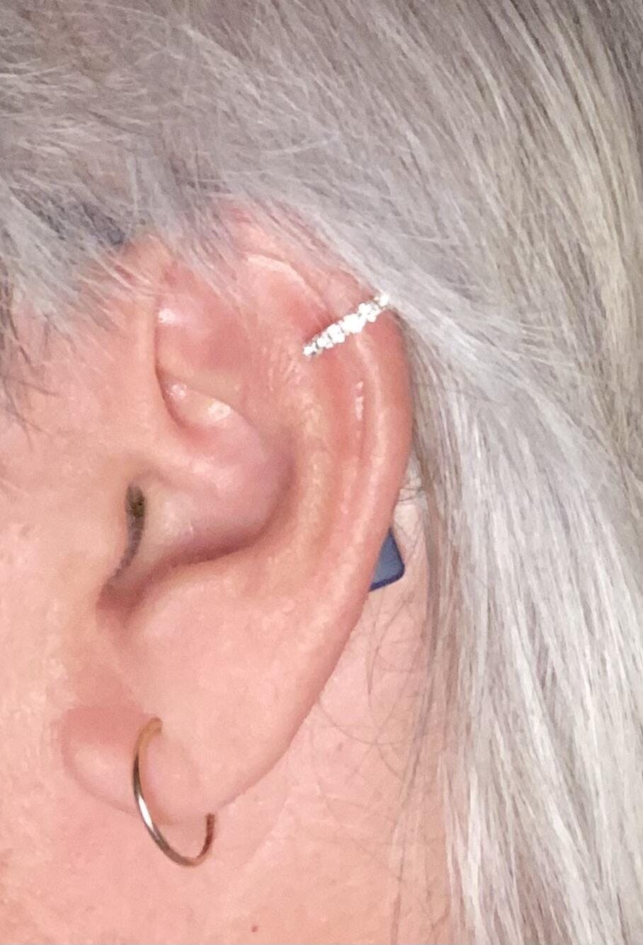 Cet ear cuff en argent sterling 925, orné de zircons scintillants, apporte une touche audacieuse à votre look. Son design moderne et raffiné se distingue par son éclat, parfait pour ceux qui osent l'originalité. Une pièce unique qui sublime l’oreille avec style et élégance.