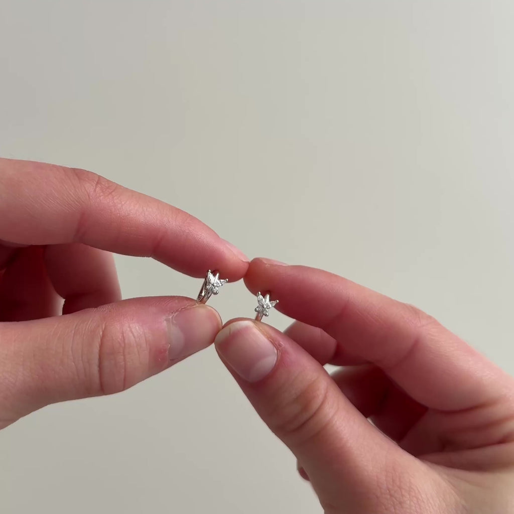 Les Papillonnantes sont des boucles d’oreilles en argent sterling 925, chacune délicatement ornée d’un petit papillon. Légères et aériennes, elles ajoutent une touche de grâce et de féminité à vos tenues, tout en restant élégantes et raffinées.