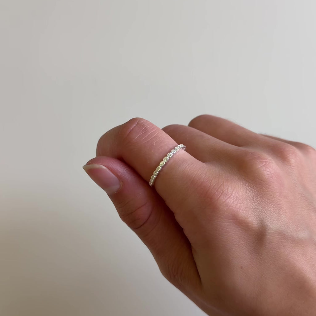 À savoir aussi : l’argent sterling est un métal naturellement malléable. Il peut donc légèrement se déformer avec le temps, surtout pour des pièces plus délicates comme les bagues ou les joncs ouverts. Si ça arrive, pas de panique : tu peux les remettre doucement en forme à la main ou à l’aide d’un petit objet cylindrique (comme le manche d’un pinceau à maquillage). C’est simplement une des caractéristiques normales de ce type de matériau.